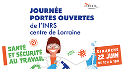 Journée portes ouvertes de l’INRS - Centre de LorrainePublié le 15 mai 2025Événement est ouvert à tous, les prochaines Portes ouvertes de l'INRS se tiendront le dimanche 22 juin 2025 de 10h à 18h sur son site de Vandœuvre-lès-Nancy (54). -