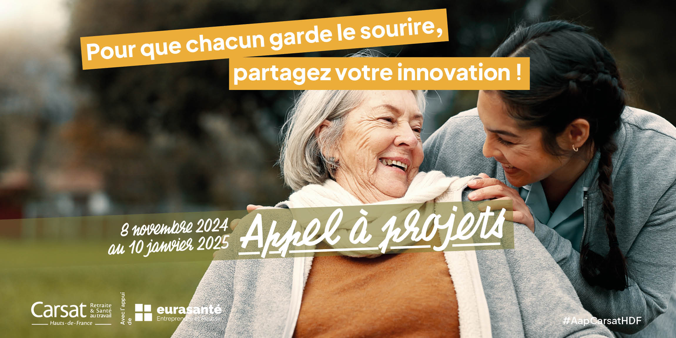 La Carsat Hauts-de-France, avec l’appui d’Eurasanté, lance un appel à projets afin d’améliorer les conditions de travail des professionnels du vieillissement, engagés auprès des seniors autonomes du 8 novembre 2024 au 10 janvier 2025.Accompagnement de porteurs de projets (clôturé)